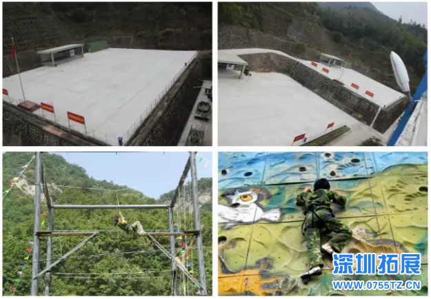 基地拥有四个训练场,共计15000余米,同时还有3个标准舞台。硬件设施完善。1号和2号训练场地毗邻,同时还有3号军事体验场和攀岩高空架场地。