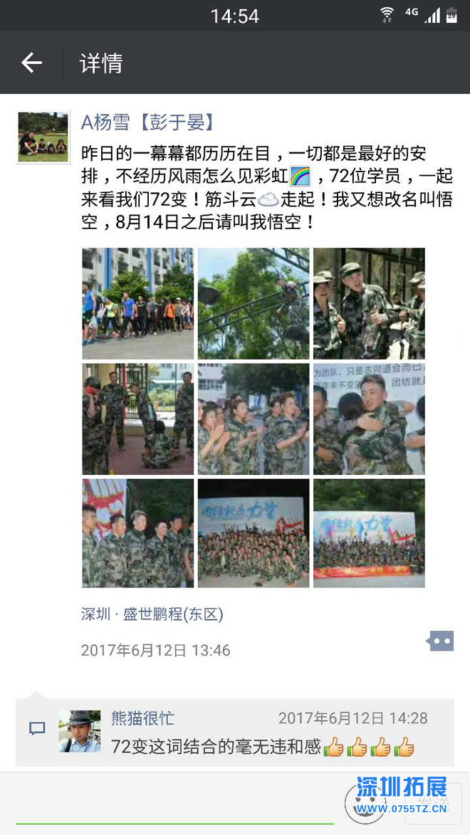 这次拓展活动办得相当成功效果也很显著,不说很好但是我们一点一点的在改变,大家从活动中学习到的东西也慢慢的拿到工作上去,这点公司很高兴,再次感谢巴顿拓展团队,真的太棒了。